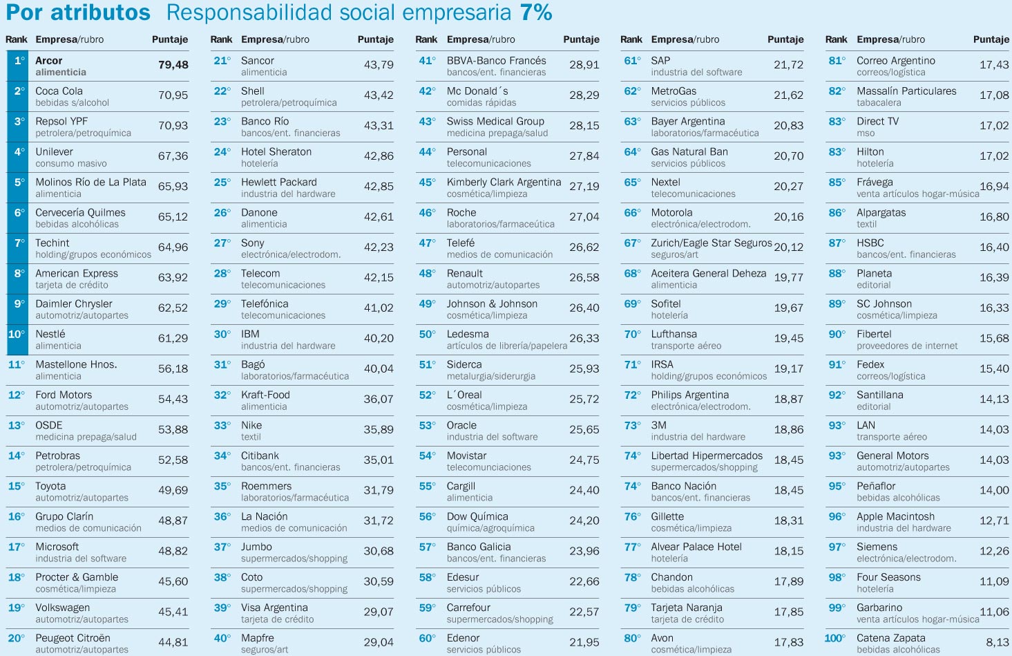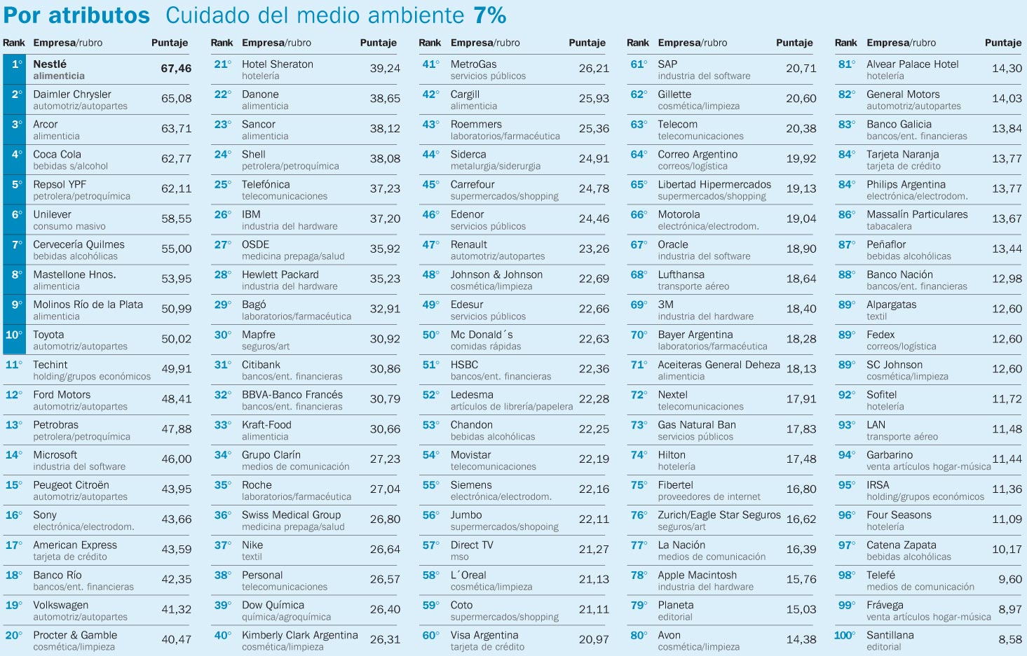 El domingo 22 de octubre, el suplemento Económico del Diario Clarín (uno de los principales matutinos de la Ciudad de Buenos Aires) publicó su «Ranking Clarín de Prestigio 2006», que si bien a través de los años ha ido variando su nomenclatura, no se trata de otra cosa que el índice por el cual este diario mide a las 100 empresas más importantes del país.